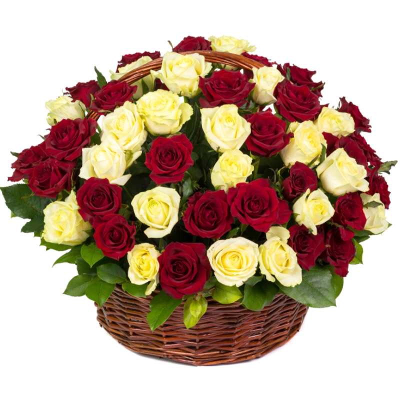 Корзина из 71 красной и белой розы